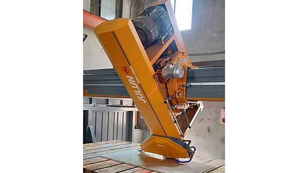 該機(jī)采用PLC編程控制系統(tǒng)和人機(jī)操作界面,輔以高精度旋轉(zhuǎn)編碼器定位及紅外線標(biāo)線器,左右走刀采用變頻器控制,可根據(jù)石材材質(zhì)進(jìn)行調(diào)速,上下升降采用液壓升降,關(guān)鍵部位均采用進(jìn)口零配件,主機(jī)頭可傾斜50度,使用范圍更廣,因而具有切割效率高、切割精度高、穩(wěn)定性高、操作簡(jiǎn)便等優(yōu)點(diǎn),特別適用于高價(jià)值大規(guī)格花崗巖、大理石和異形石材制品的切割。