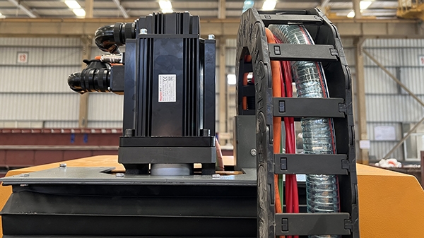 該機(jī)采用伺服數(shù)控系統(tǒng)和人機(jī)交互界面,自動化程度高,刀路一次成型,操作簡易。全伺服電機(jī)驅(qū)動系統(tǒng),響應(yīng)快,定位準(zhǔn)。橫梁/中拖體/升降滑板均采用優(yōu)質(zhì)灰口鑄鐵,吸振穩(wěn)定,切割仿形更順暢。前后左右均采用高精度直線導(dǎo)軌導(dǎo)向,精密減速機(jī)+研磨齒輪齒排驅(qū)動,行走精度高。升降采用大直徑鍍鉻導(dǎo)柱導(dǎo)向,行星減速機(jī)+滾珠絲桿驅(qū)動,運(yùn)行阻力小,使用壽命長。超大規(guī)格的工作臺,可同時布置更多待加工料,提高效率。該機(jī)可實(shí)現(xiàn)(仿形+打底》一次成型免手工開拋,適用大理石、花崗巖、碑石等加工。